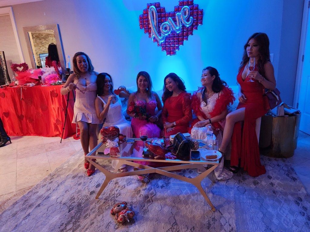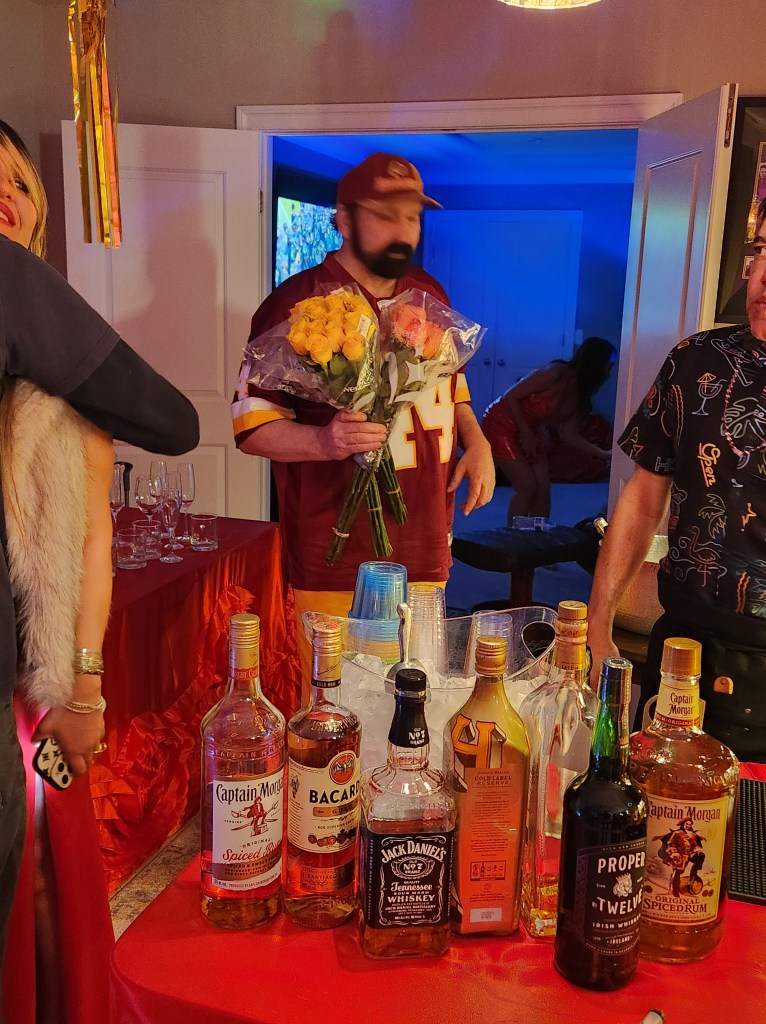 It was a Super Bowl/Galentines Day party. Men were encouraged to wear sports jerseys and the ladies were encouraged to wear appropriate dresses! The game was on three televisions, music bumping and the ladies looked amazing! Afshin Photography was also there taking amazing pictures.