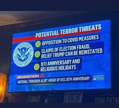 Now the feds are telling us if you question the COVID 19 BS or question Sleepy, Creepy Joe’s 80 million votes, then you are a threat!