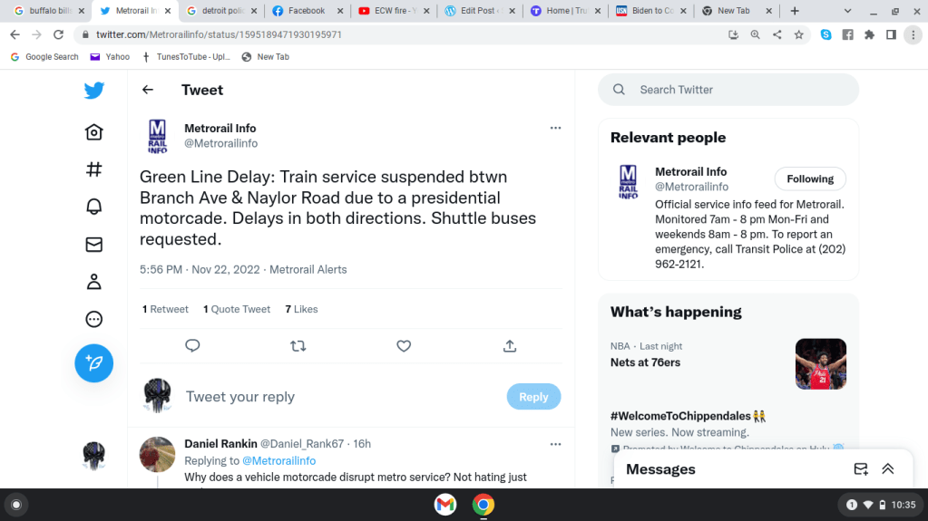 It gets even better. When the POTUS travels to Andrews by car, The Secret Service has Metro stop train service on the Green Line where the population that rides the system in this area are overwhelming poor. I got the 411 on stopping the trains for POTUS from a secret source; Twitter.