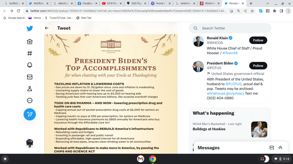 White House Chief of Staff Ronald Klain posted talking points for “that Uncle” at the Thanksgiving table to boost the Biden Administration “accomplishments.” I’m “that Uncle.” YOU are that uncle! So when that Libtard starts complaining about something at the table and your in your second pint of Old Number 7!