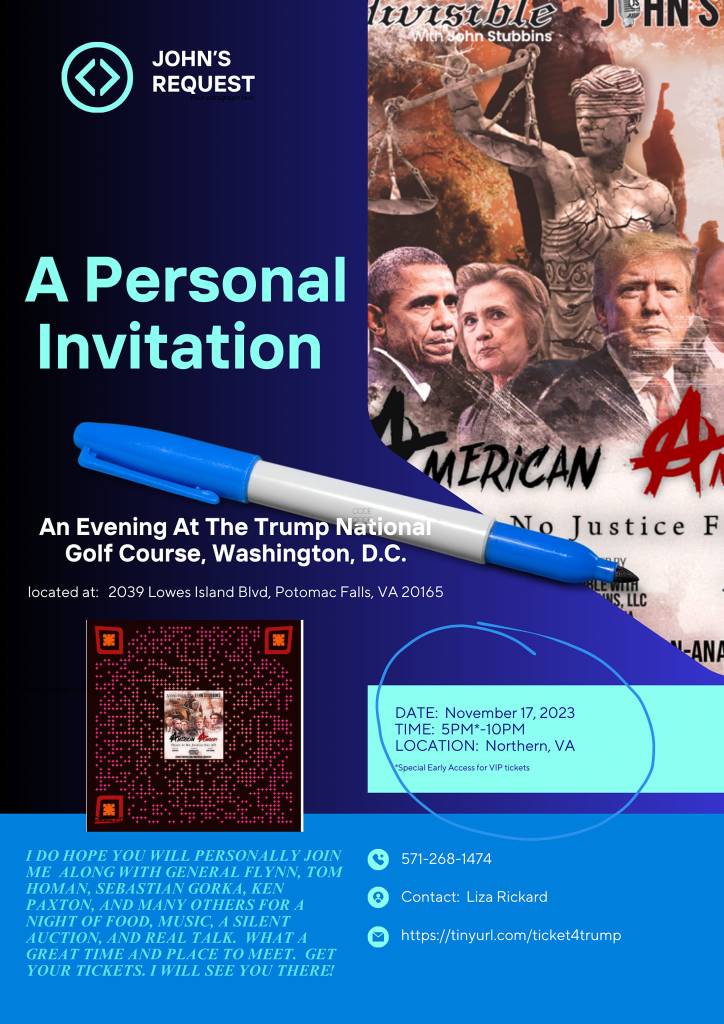 In the meantime, get down here to Virginia! This Friday November 17 at the Trump National Golf Course in Potomac Falls! Go to https://johnstubbins.com/events/trump-national-golf-club/ to get tickets!