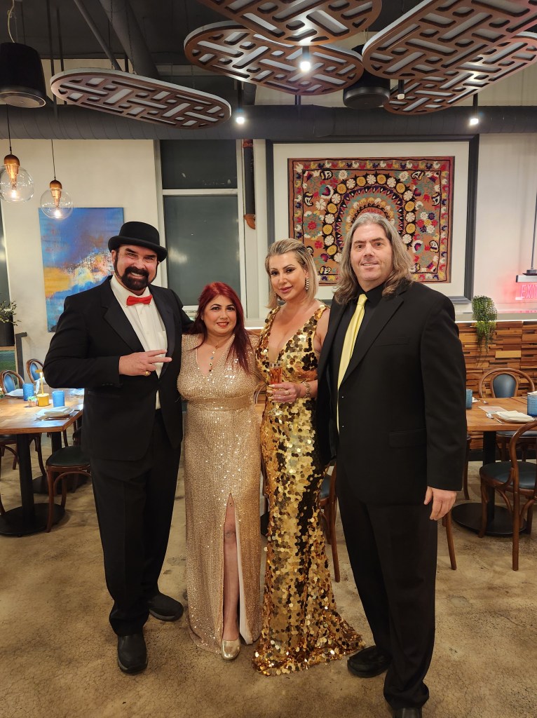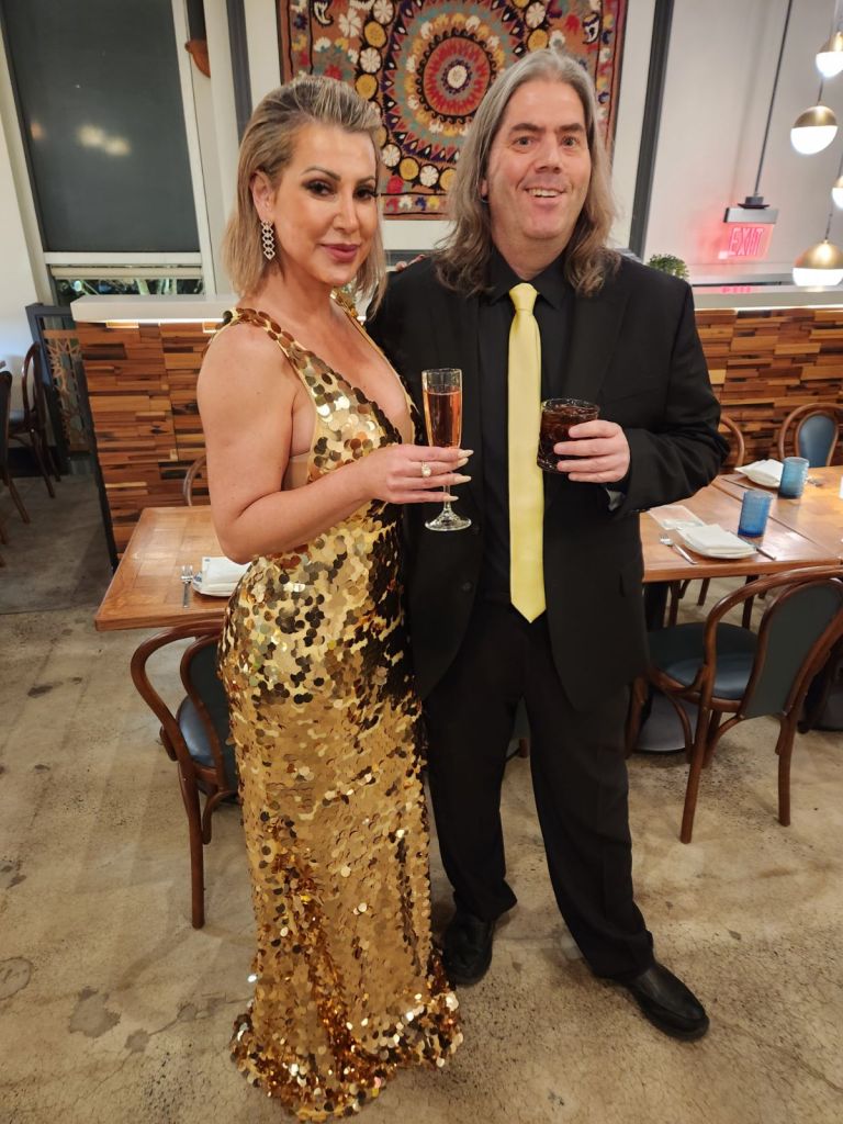 I was invited to a birthday party of the two ladies standing between myself and Ed Huebner. Ms Indu Fields and our own Danila Rodrigues! If I get invited to anything involving Ed and Danila, I’m there! The theme for this celebration was Black and Gold. I have two ties both gold. I took a picture and texted Danila which one should I wear. I was getting ready for work and was running late, didn’t check my phone and I picked the wrong tie!
