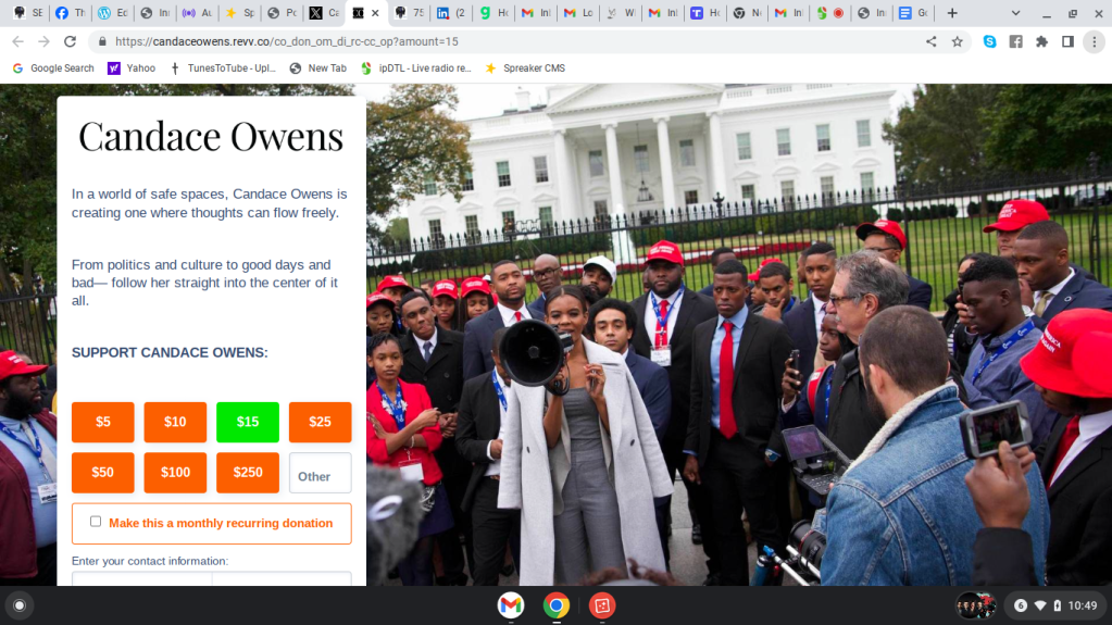 My biggest complaint about the so-called conservative movement is the constant grift! All we do is shake down one another for the next dollar! And this takes the cake. Ms Owens: your fans are hurting. Inflation is eating away at our paychecks. Have you seen the price of gas lately? Food? Car insurance? Rent? You got some brass balls lady!