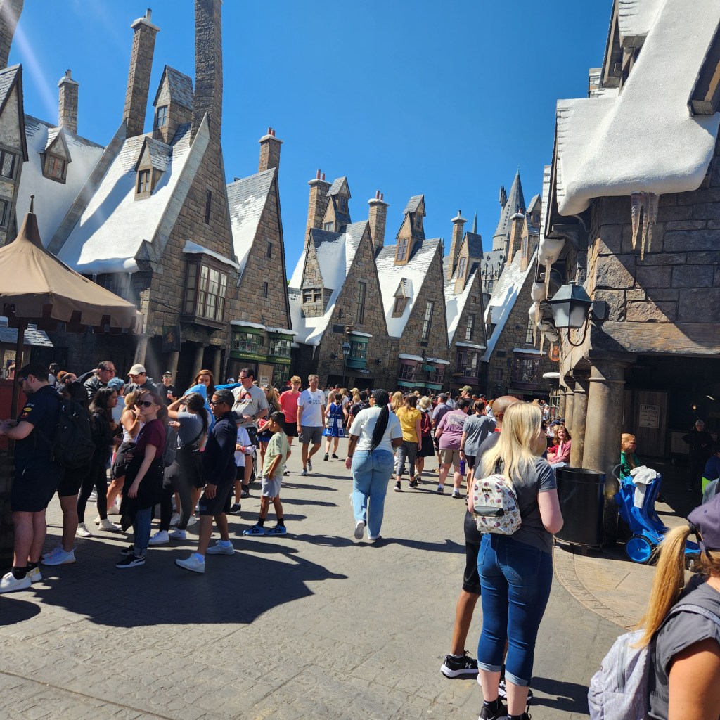 We saw most of Universal Studios so my kids wanted to go to Islands of Adventure. They had a Harry Potter Train that went between the parks. That took forever. It would have been faster to leave the park and walk next door! But…….. We get to the other Harry Potter place which looked really neat. And crowded! They sold something called Butter Beer which people were lining up like they were giving away government cheese! One cup; $9! It tasted like fancy cream soda. And it had no alcohol in it!