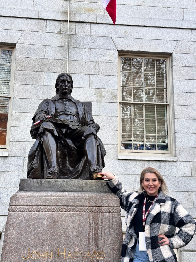 As you all well know Danila Rodrigues is an amazing woman. Beautiful, athletic, hardworking, driven, who is raising some amazing children. Add to the fact she has a great personality and holds her own coming on “75 Radio!” Well you can add brilliant to the long list of positive adjectives to describe the World’s First Radio Spokesmodel! In the picture above Danila is standing next to a picture of John Harvard. She is wearing a lanyard around her neck with the word “Harvard” around her neck. Why? Because she is at Harvard learning about health!