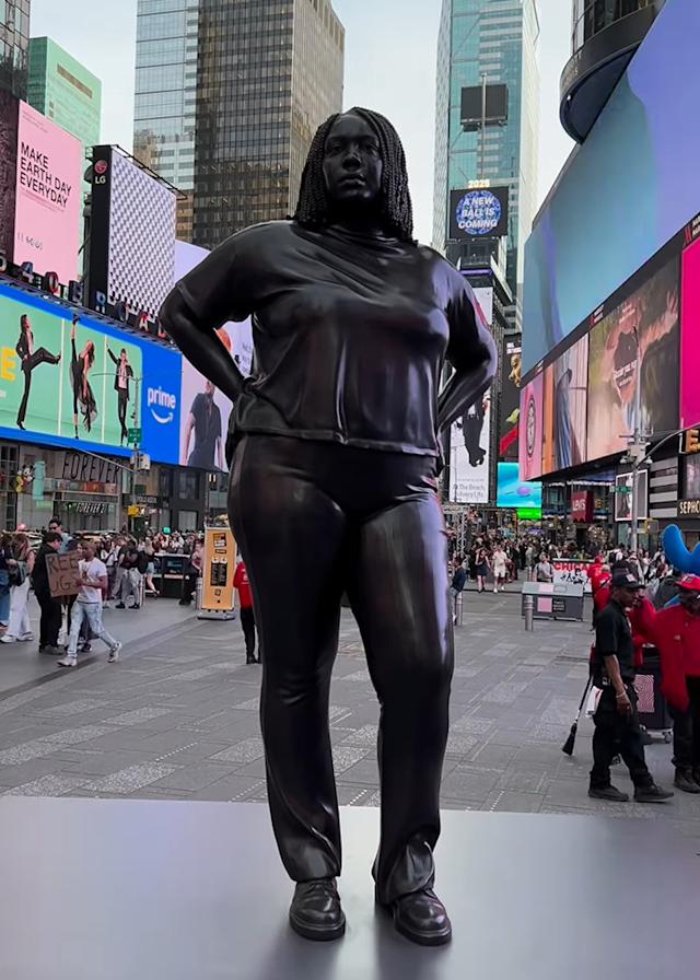 Recently an artist from England created a statue of an icon. This statue was constructed with intricate detail. Residents and tourist from all over are coming to see this iconic statue that screams: rebel, power, icon, one of a kind and rock and roll! Its not this statue in Times Square were talking about.