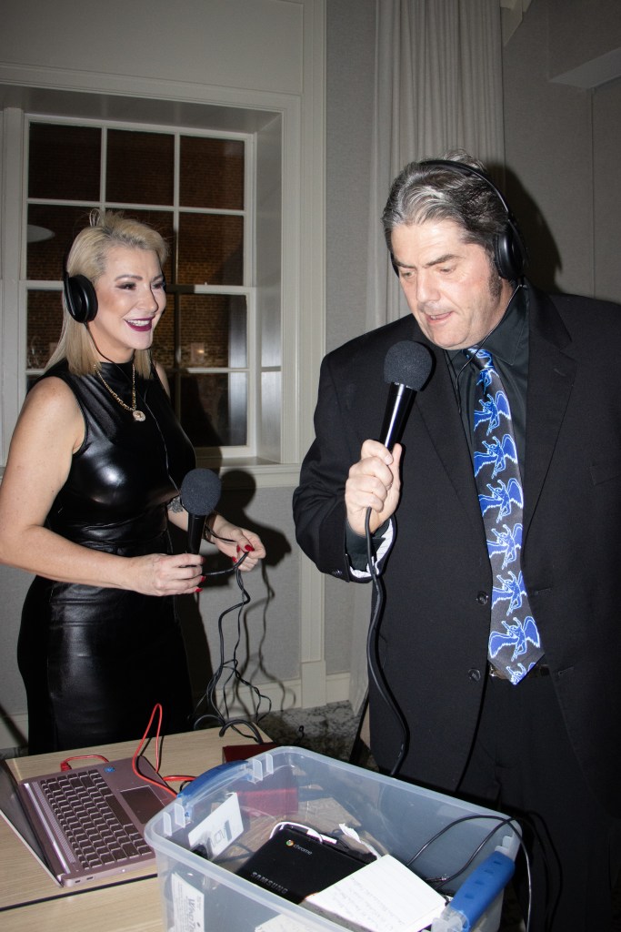 I set up my computer and we are off! The first five minutes is red hot and rolling! Then the receptionist lady told me I couldn’t do the show unless I signed a waiver! I said I’ll sign it and I’m live on the radio! No dice! I find Ed who’s lighting candles for a birthday cake for Jackie Davila! I yelled: “Ed! The lady won’t let me do the show! Go fix it!” Ed was going to give the hotel staff a very bad day. I find poor Bian Sussman and put him to work. I asked him to find me a room, quick! And he did! I’m scrambling and setting up and Danila is coming on! Hot Damn! And Delany is there to photograph this special moment!