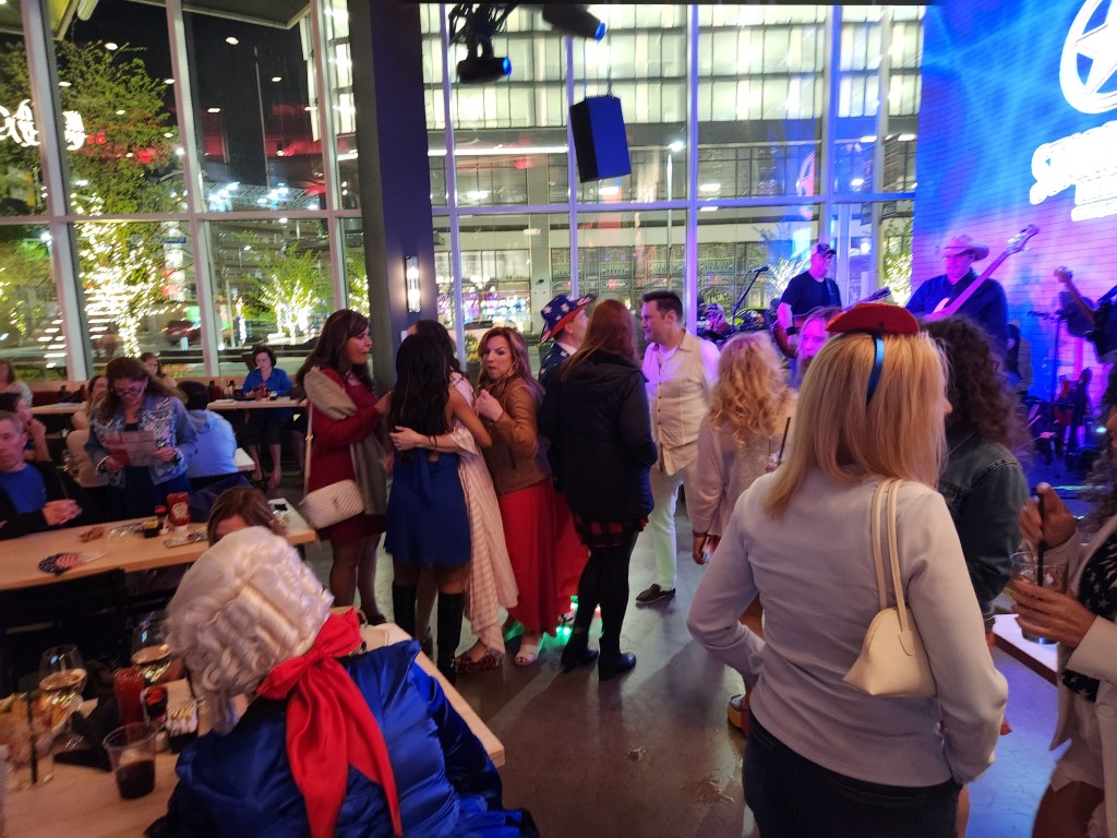 Everyone was dressed in red, white and blue! Dan’s sneakers actually lit up! One lady you see pictured above was dressed as Lord Fairfax’s wife! Then it was showtime! And of course there were “This is 75 Radio” moments. Both Mike and Danila were out sick, and Ed was MIA! But we have Dan coming on! We walk to my hotel room. Dan tells no one and has no clue what he’s going to say! We stop at the hotel bar for a quick one! Dan is perfect for 75 Radio! Dan comes on and kills! Meanwhile his phone is blowing up because he told no one! The segment ends and he heads back out before the search party is deployed.