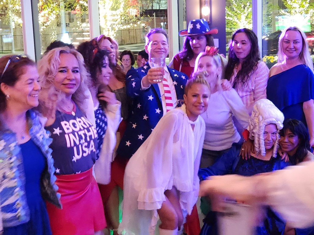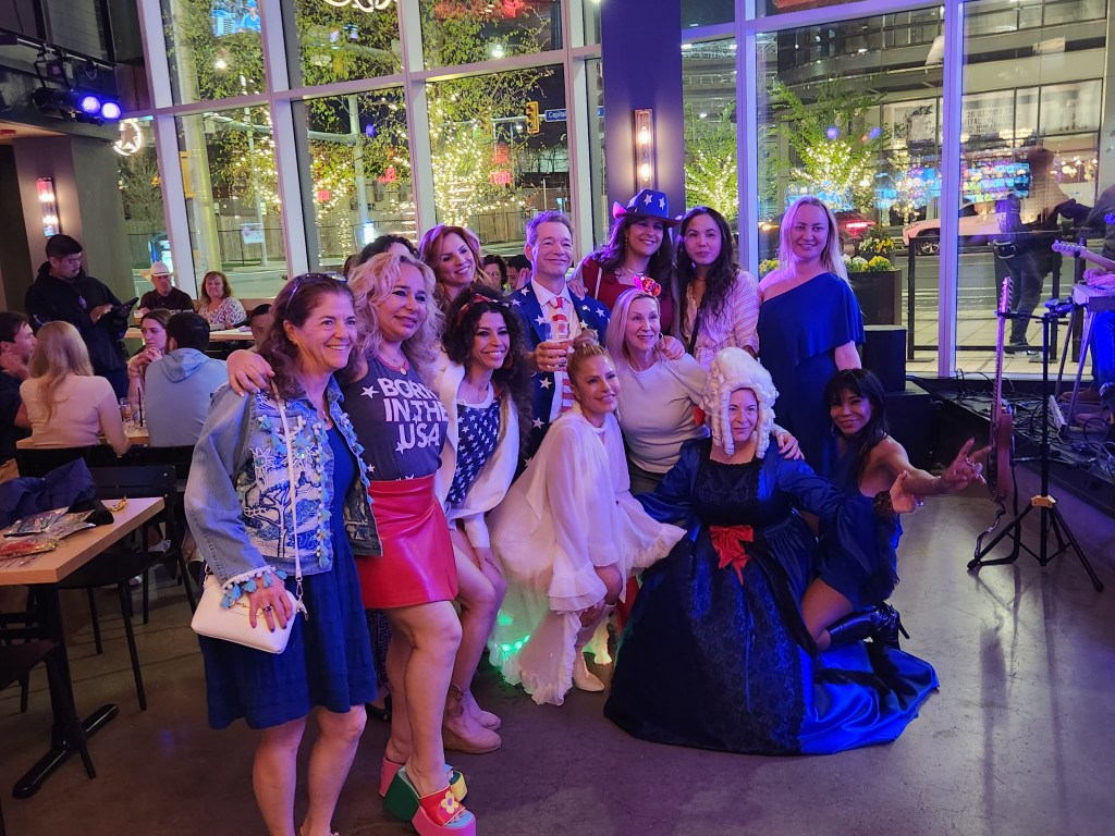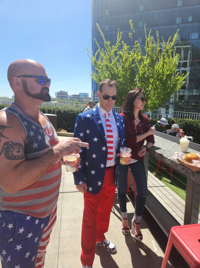 One of the best parts of the day was the people looking at us. You have a large bunch of people wearing red white and blue, having a good time with a ton of good-looking women. We weren’t a rock and roll band, a wrestling organization, or even a political organization. Not one MAGA hat and not one word of politics spoken. They couldn’t figure us out! When people asked me what’s going on with the colors, I replied: “It’s Saint America Day!” It’s something Dan came up with. I love it. The word “saint” is held with reverence and respect. “Saint’ means something important. Then America. The nation we live in and the nation we love. “Saint America Day” also confuses people even more!