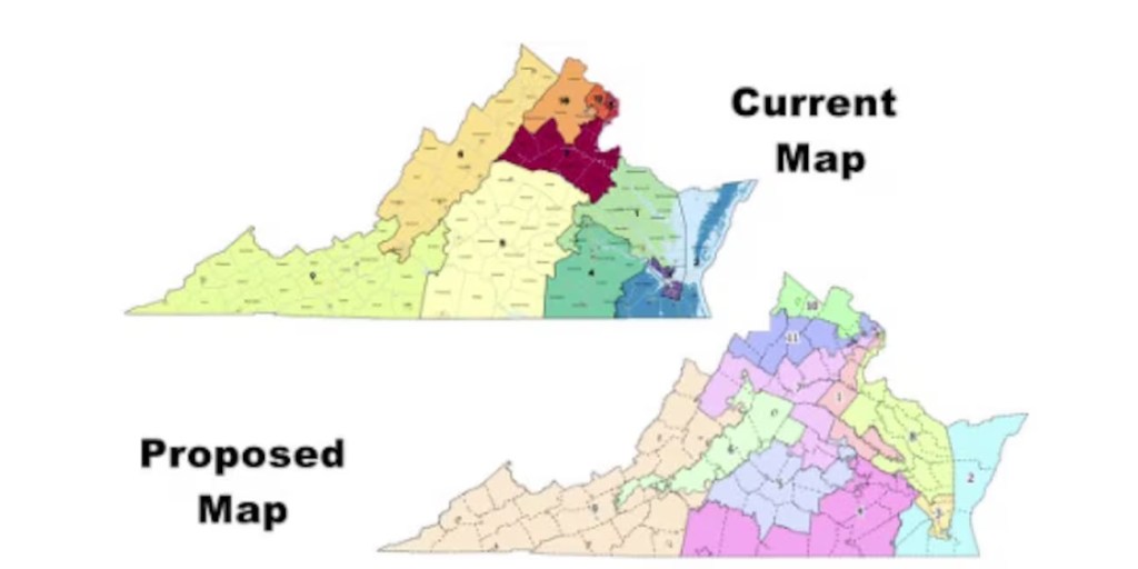 Virginia liberals complain about “no king’s” dictatorships, fascism and claim they are for a democracy. We say hogwash! The Virginia legislature came up with a ballot referendum where the Congressional Districts are redrawn so that Democrats have up to 10 Representatives in Congress and maybe one Republican. Most of these proposed districts start in Northern Virginia full of the DC Socialists! The Dem’s claim that since other states are doing it, Virginia needs to! Well, What other states do, doesn’t concern Virginia unless its businesses and people are going to those states.