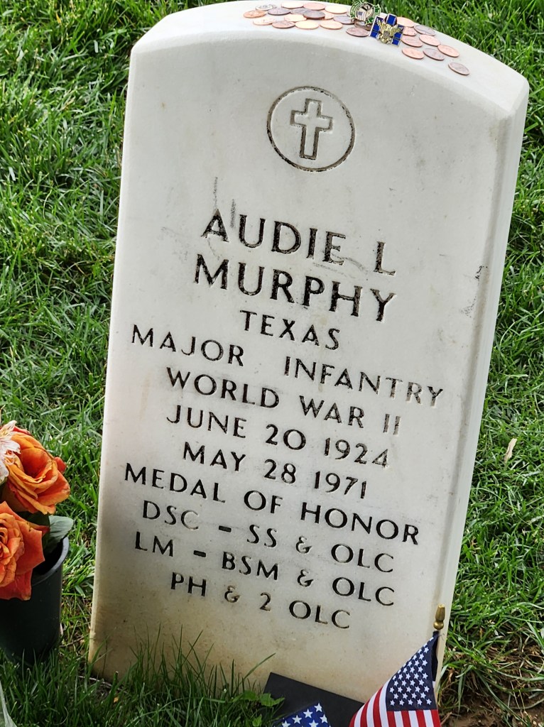 The next stop was the grave of Major Audie Murphy. Murphy is the most decorated solider in US history. Murphy attempted to enlist in the Marines and was denied because of his height. The Army took him instead. And he kicked ass!