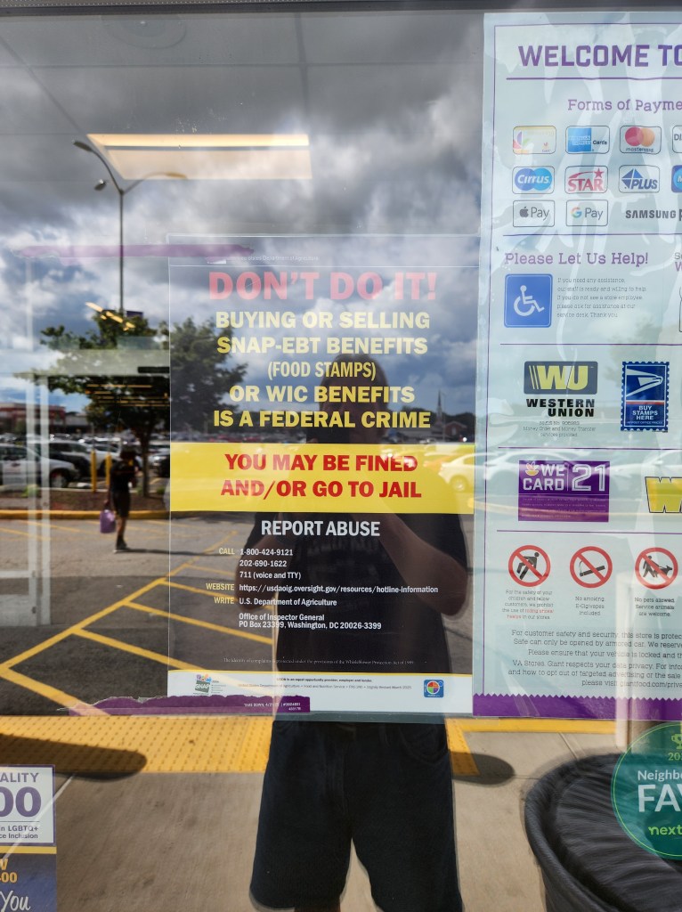People are buying and selling EBT benefits! And we pay for that. Im pretty sure you don’t see that sign at Whole Foods or Trader Joe’s!