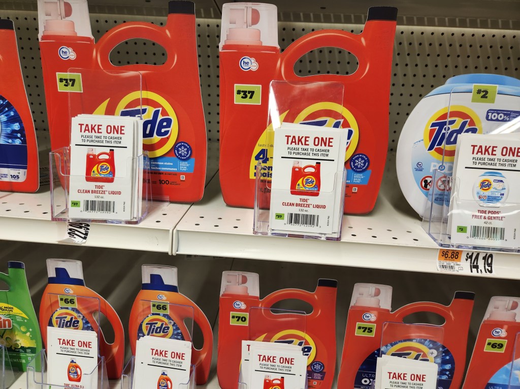 Then there’s the store “security guard.” They now have a person stand by the one entrance from open to close to prevent sticky lingered customers from walking out with merchandise. Then there’s the detergent. Apparently in some neighborhoods Tide is used as currency. So now the Tide detergent is under lock and key! Just like baby formula and cigarettes!